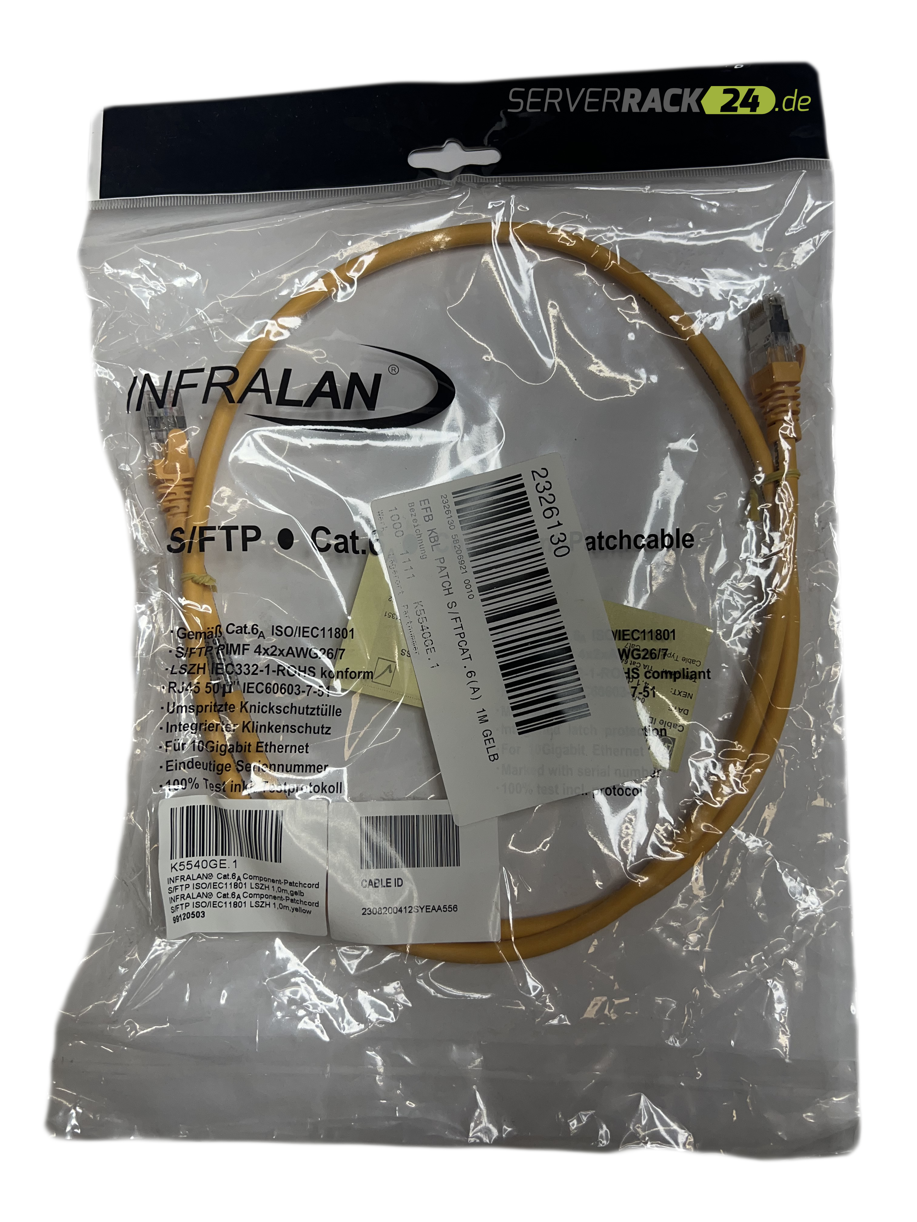 Produktinformationen "1m dunkelgelb Cat. 6a S/FTP Patchkabel Netzwerkkabel rund InfraLAN (NEU & OVP)"